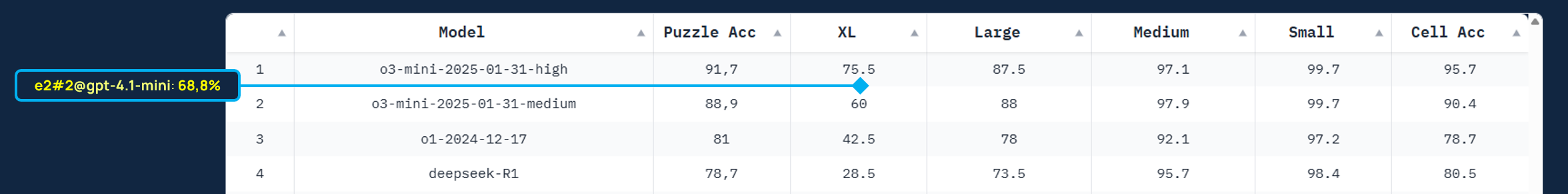 • e2-research#2 @ gpt-4.1-mini erzielt eine Lösungsrate von 68,8 % bei den XL-Puzzles,
